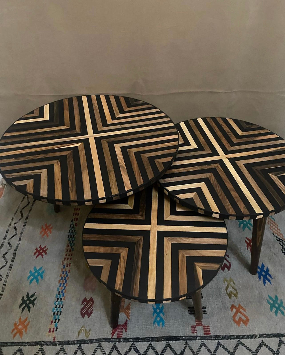 Striped Coffee Table – Walnut Wood & Black Resin – Handmade Moroccan Accent