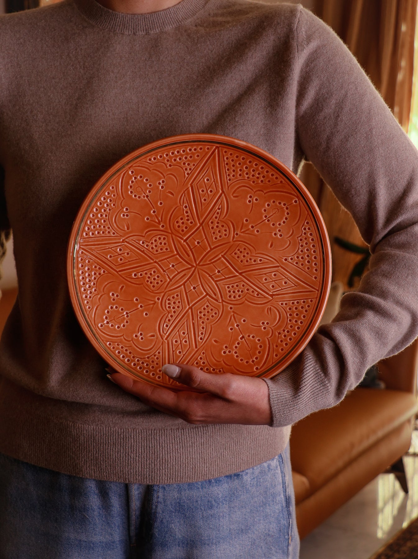 Moroccan Ceramic Plate with Gold Rim and Intricate Design, Authentic Terracotta Moroccan Dinnerware Plate with Gold Rim